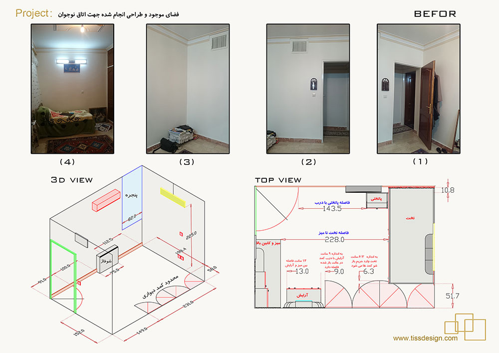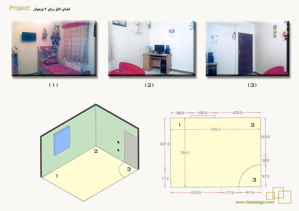 سیستم ارائه تصاویر از طرف متقاضی همانند تصاویر زیر می باشد (برای نمونه ۲ اتاق از یک واحد مسکونی برای شما مشخص گردیده است) این بخش می تواند از طریق تیم طراحی و نقشه برداری آتلیه تیس انجام پذیرد که شامل هزینه برای شما خواهد بود.